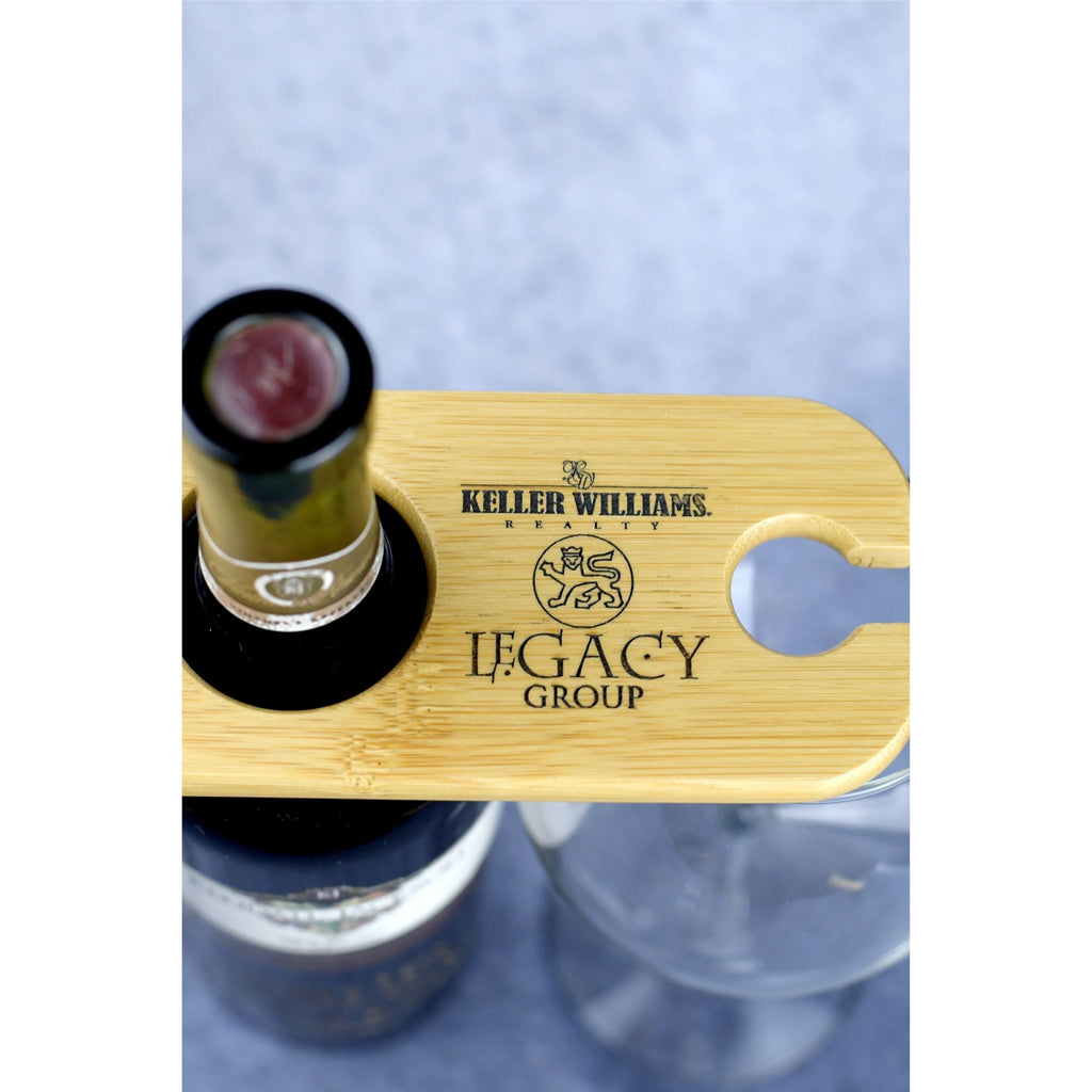 This is a solid pine collar that fits over your bottle of wine. The collar holds two of any stemmed wine glass. This piece can be intricately laser engraved to hold your company or organizational logo. Great gift idea for employees, clients, or members.