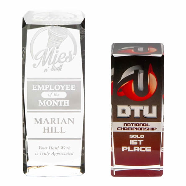 Choose your own blank slate! This Crystal Block is ready to be etched or vividly color imprinted for your event. This crystal piece is available in 3 sizes to suit any level of recognition. Make it yours - it's your blank canvas!