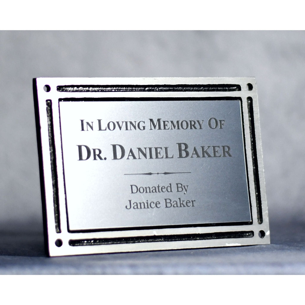 This cast aluminum plaque has a raised double border in silver or bronze and a recessed area for your personalization plate. The plaque comes with a 24" aluminum stake rear-mounted to allow for display. It is a perfect way to honor those you love and respect. This plaque is outdoor durable, creating a permanent tribute.