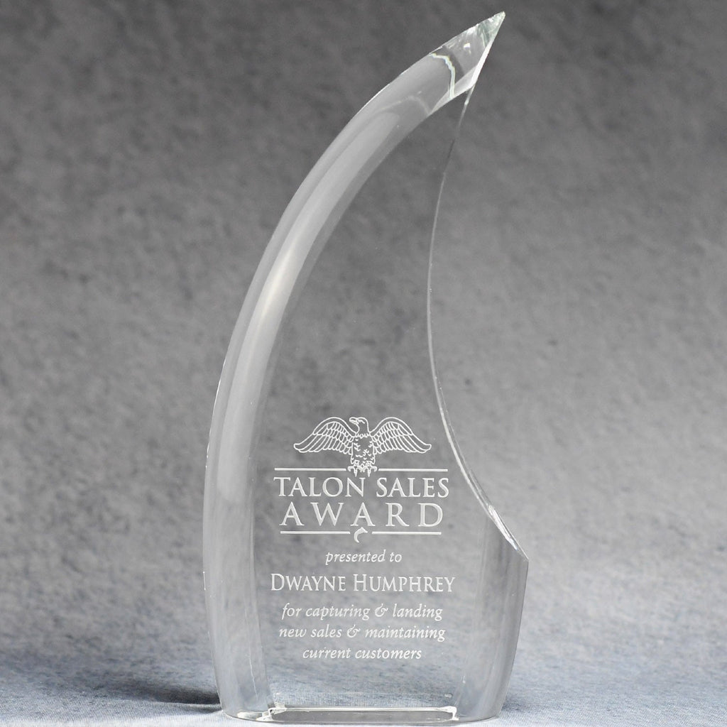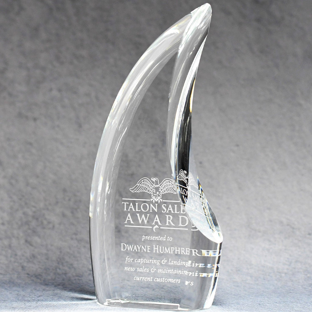 This unique and stunningly thick, optic crystal award really makes a statement. With a modern flame-shaped design, this award is a true eye-catcher!