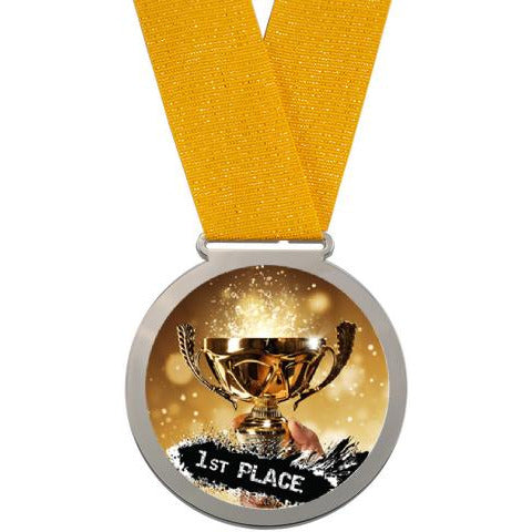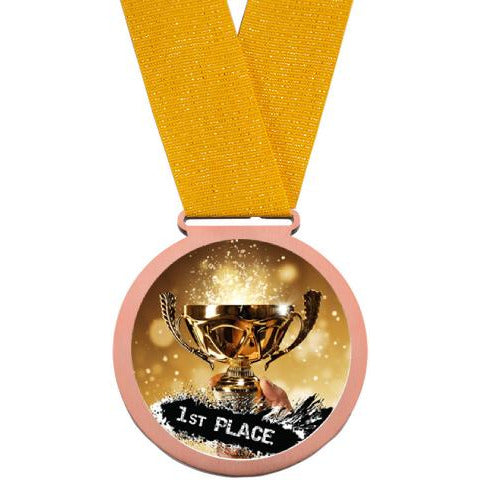 Bring out the spirit of your event with these Olympic-style medals. The front and back can be custom printed with your design or name. Available in Gold, Silver, and Bronze. back. Add a matching metallic ribbon for a spectacular photo finish.