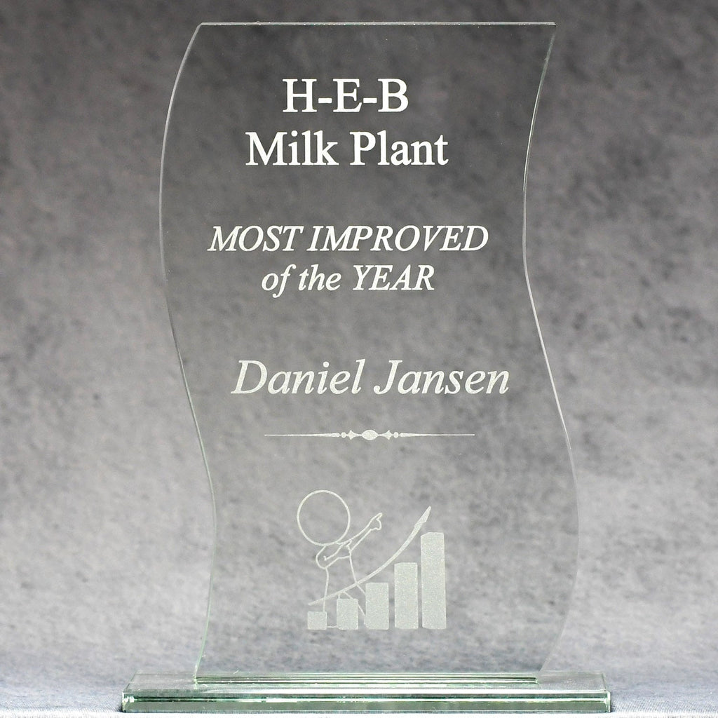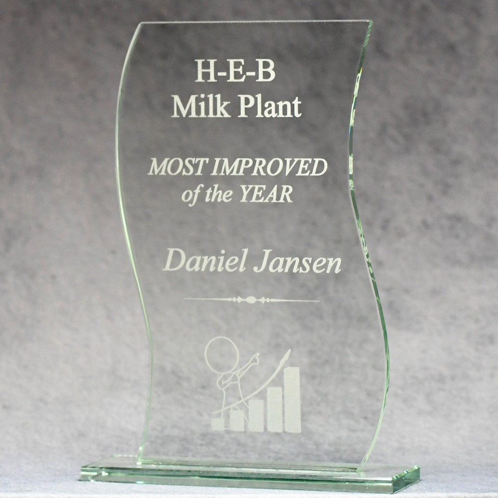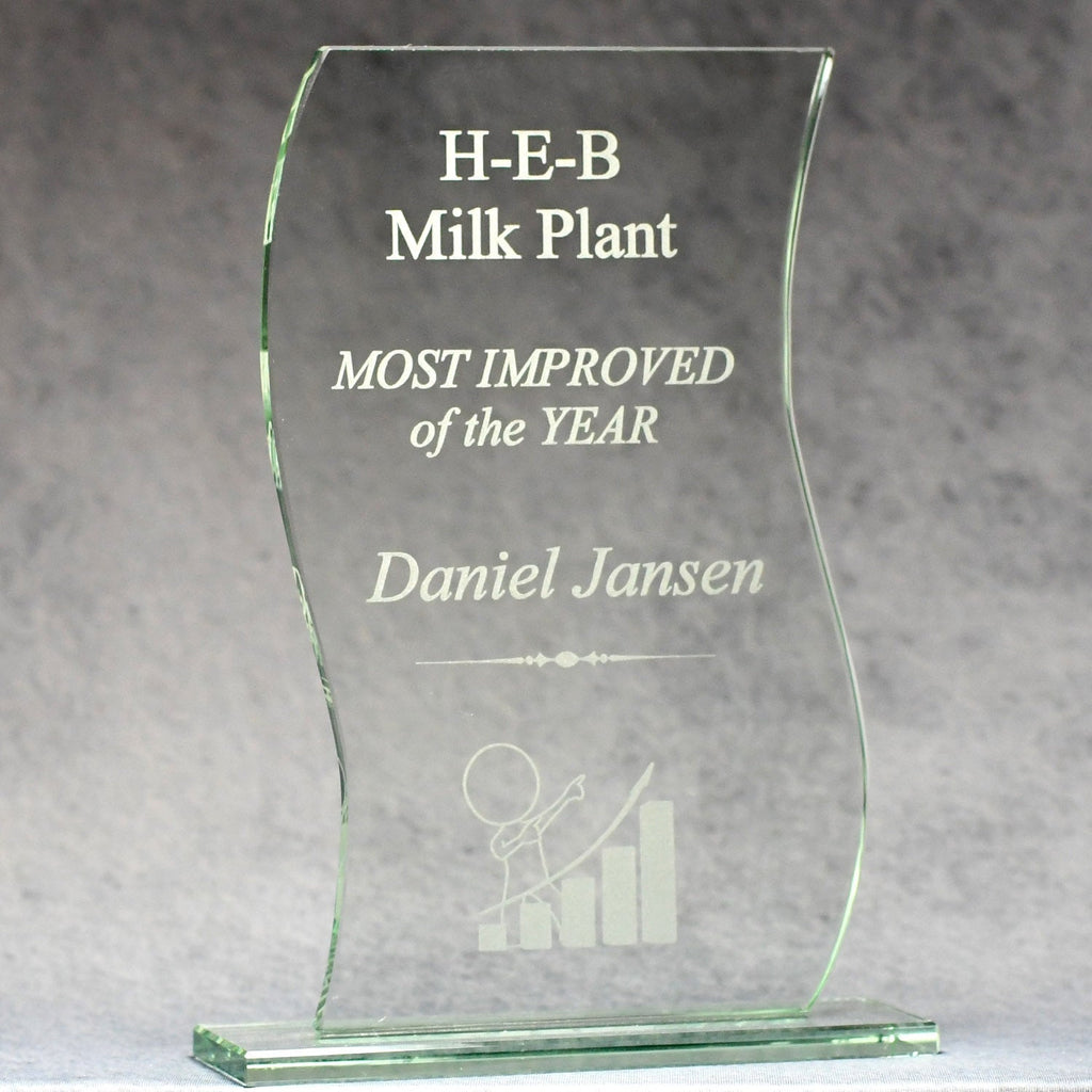 Ride the wave with this award straight to success. This award is made out of jade glass and includes a matching base. Available in three sizes, it is perfect for tiered recognition programs. The versatility allows you to choose from multiple imprinting processes. The ample imprint area will highlight your logo and personal message.