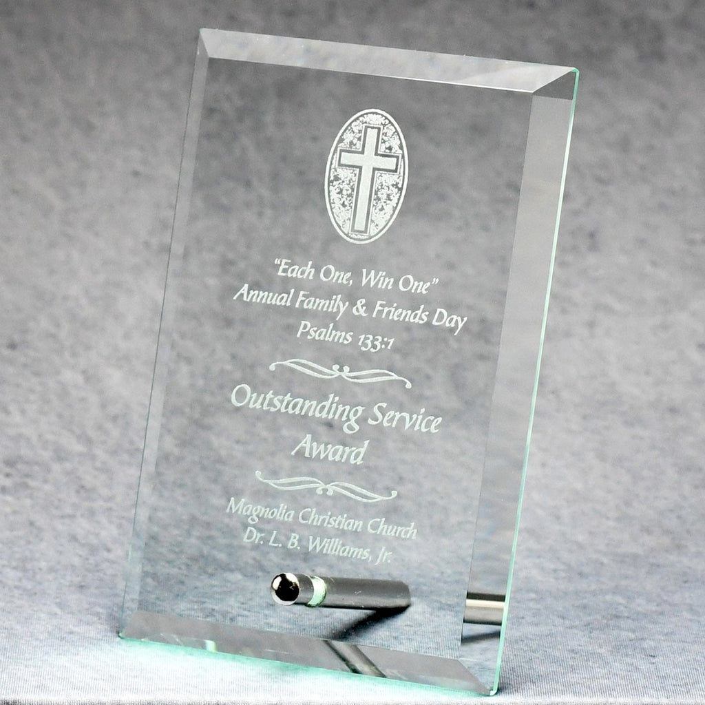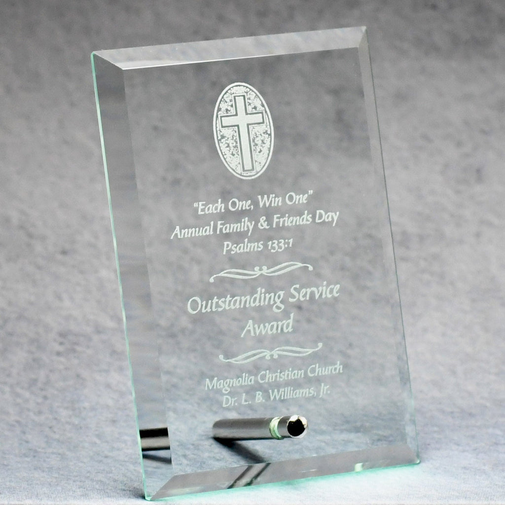 This unique rectangular plaque is made out of jade glass, a modern impressive option. Available in five sizes, it is perfect for multiple levels of recognition. The generous imprint area allows you to include your personalized message along with your logo or graphic. This budget-friendly, free-standing jade panel allows for a variety of imprinting processes.