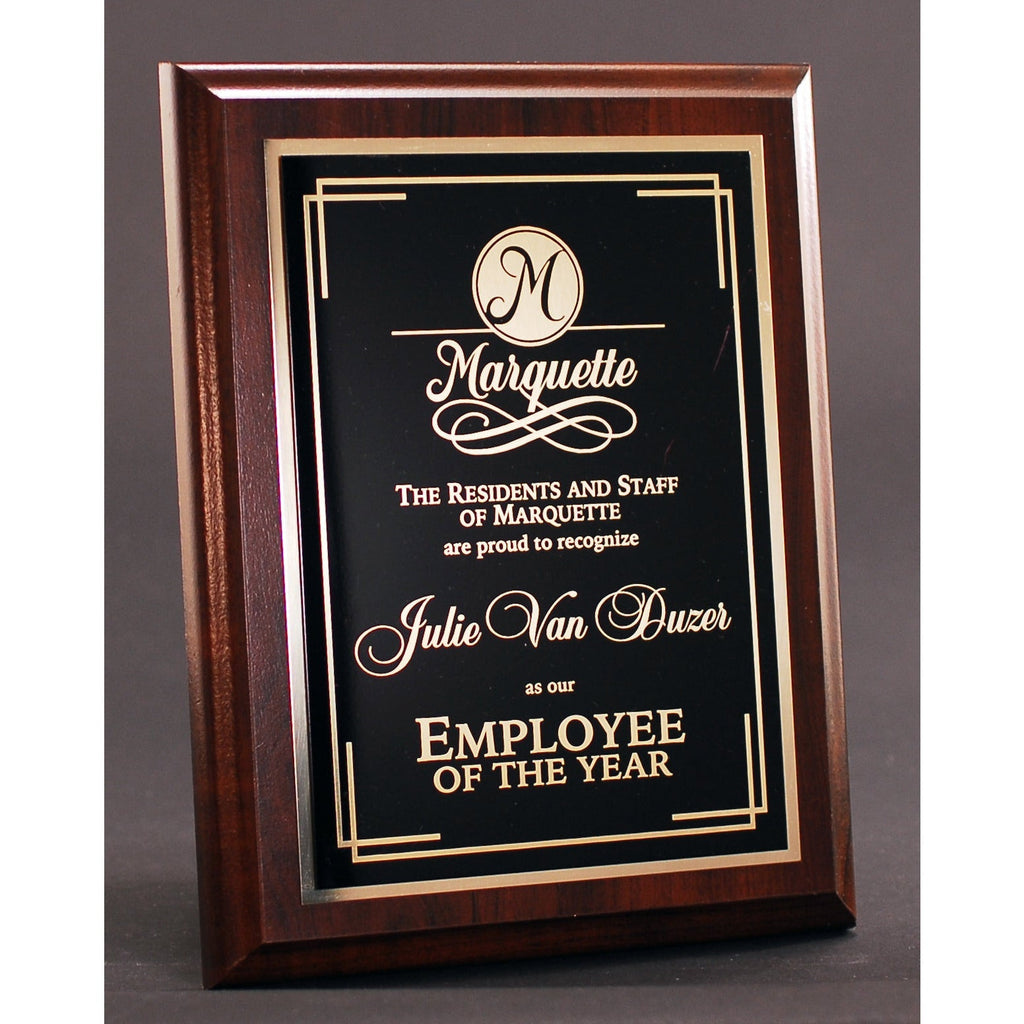 An impressive award featuring a cherry finish plaque and your choice of engraved plate ready to acknowledge the best in your organization. With four available sizes, these plaques are the perfect way to honor the Employee of the Month or Employee of the Year for your company. Include your company logo to honor a lifetime of service. Let us help you bring your vision to life!