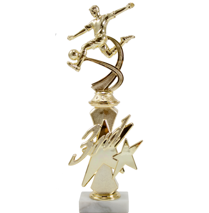 This beautifully crafted 1st, 2nd and 3rd place riser and figure trophy is ideal for commemorating any team event, sporting or academic event. Whether you're recognizing the achievements of a winning team or individual, this impressive trophy will serve as a lasting reminder of their success.