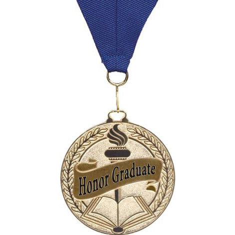 Exclusive 3" Bright Gold Honor Graduate Medal. Can be engraved on the back.