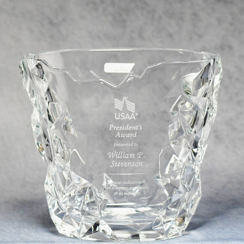 The Iceberg short vase is a modern design perfect for recognizing innovative contributions to your company or event. By adding custom text, images, or a logo you can create a unique way to reward the visionaries in your organization. This distinctive item can be a memorable way to recognize a team member or employee.