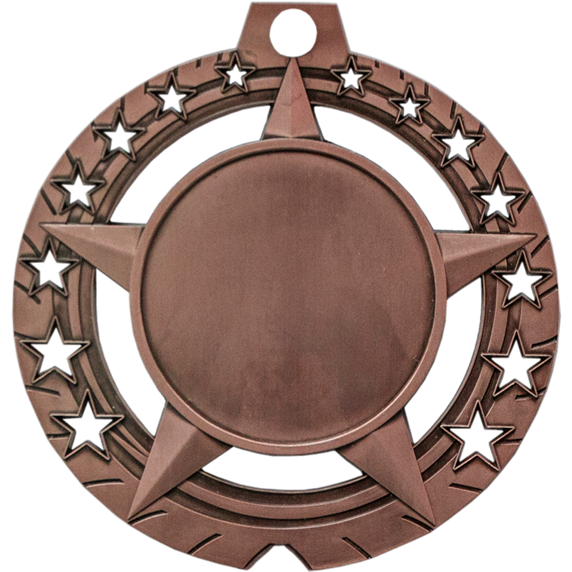Jumbo Star Medallion. This large, 3.75" Star medal has 2" insert area for stock mylar or custom insert. Available in Gold, Silver or Bronze.