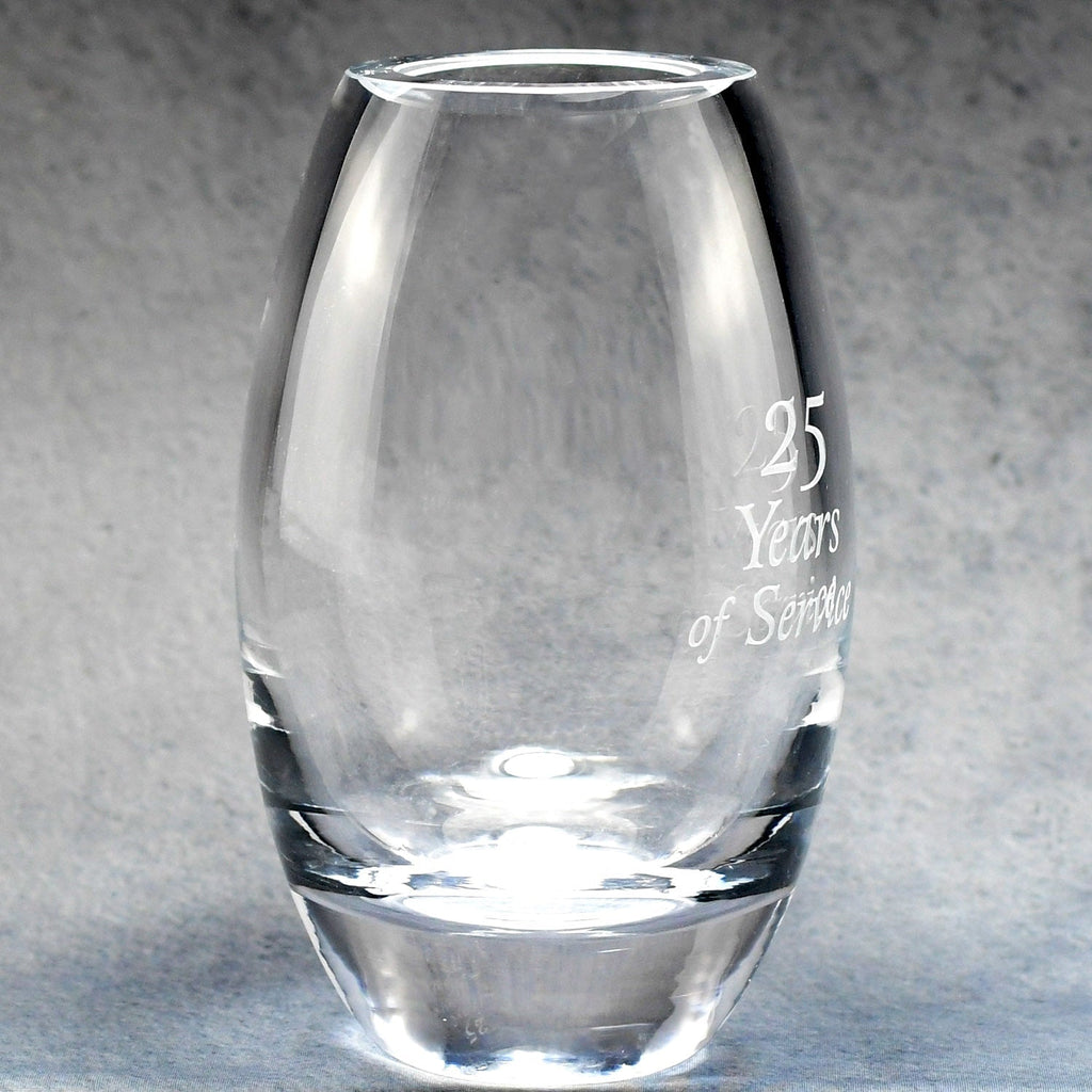 This beautiful lead crystal barrel vase has a sleek design perfect for showcasing your company logo or event design. By adding custom text, you can create a unique way to recognize the visionaries in your organization or acknowledge generous donors to your cause. The exquisite design is just the thing for a wedding gift, anniversary present, or Mother's Day Gift.