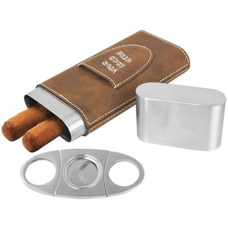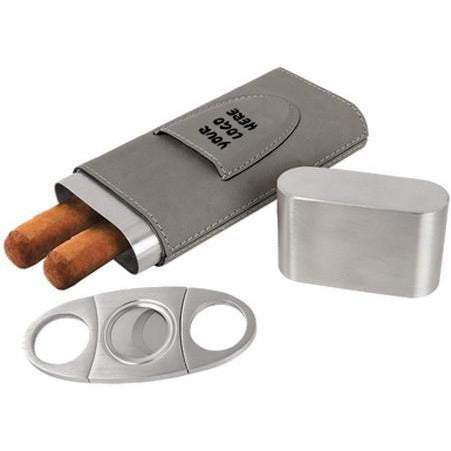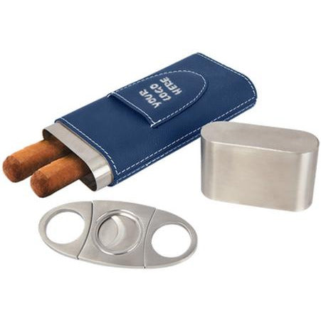 Convenient leatherette cigar case and cutter is a perfect gift for someone who enjoys smoking cigars. Personalize with name or logo. 2 7/8"L x 1"W x 6 5/8"H
