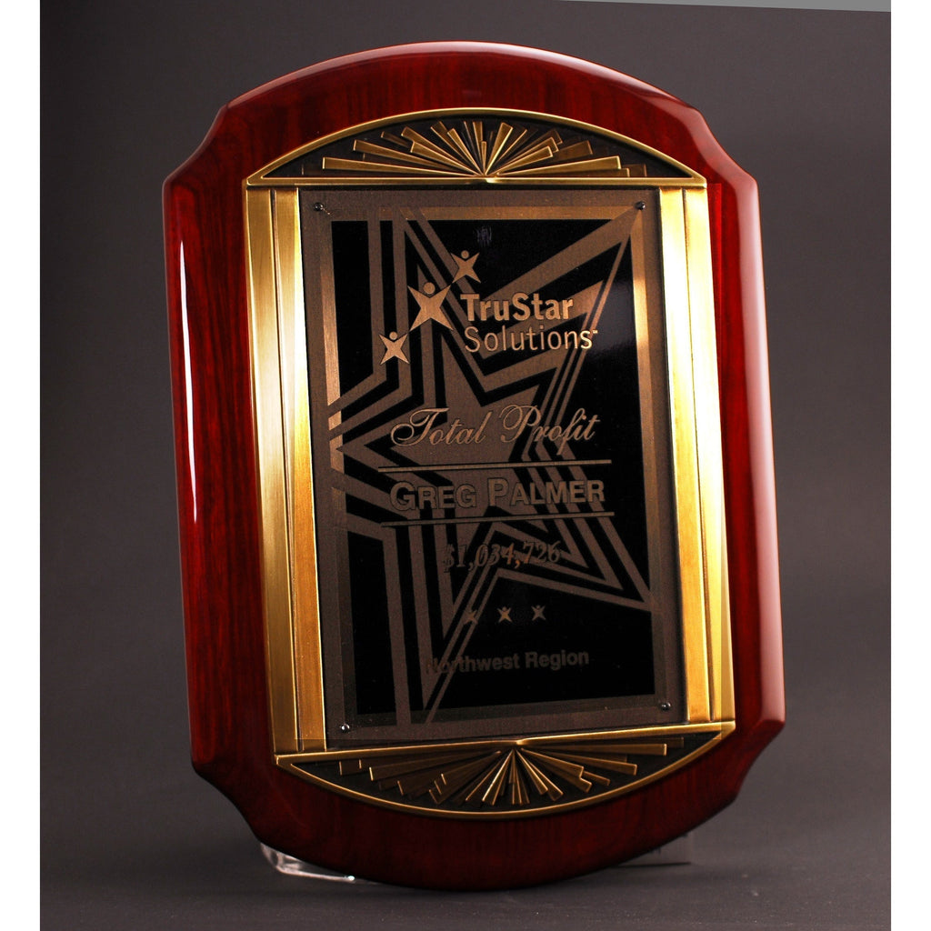 Scalloped Rosewood Piano Finish Plaque with Cast Metal Frame