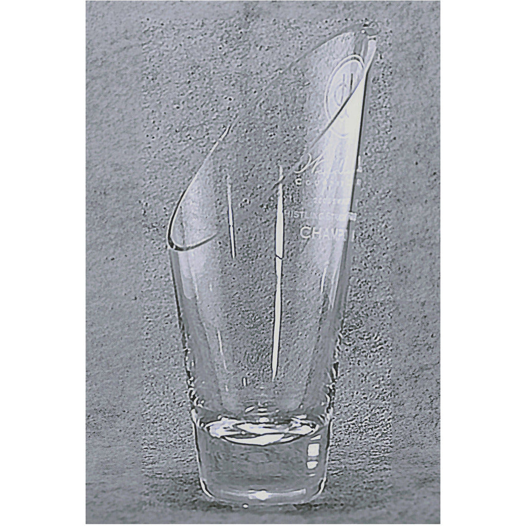 The Slant Top Glass Vase is a modern design perfect for recognizing innovative contributions to your company or event. Reward the visionaries in your organization by adding custom text, images, or a logo. A great way to recognize a team member or employee. This vase can be presented to acknowledge a significant donation to your cause. It makes a stunning Mother's Day or wedding gift. These glass vases are available in three different sizes.