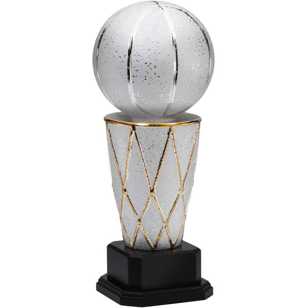 Striking two-tone silver ceramic baseball tower. Plate on base can be personalized. 14.5 inches.