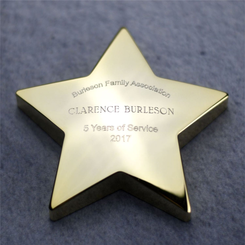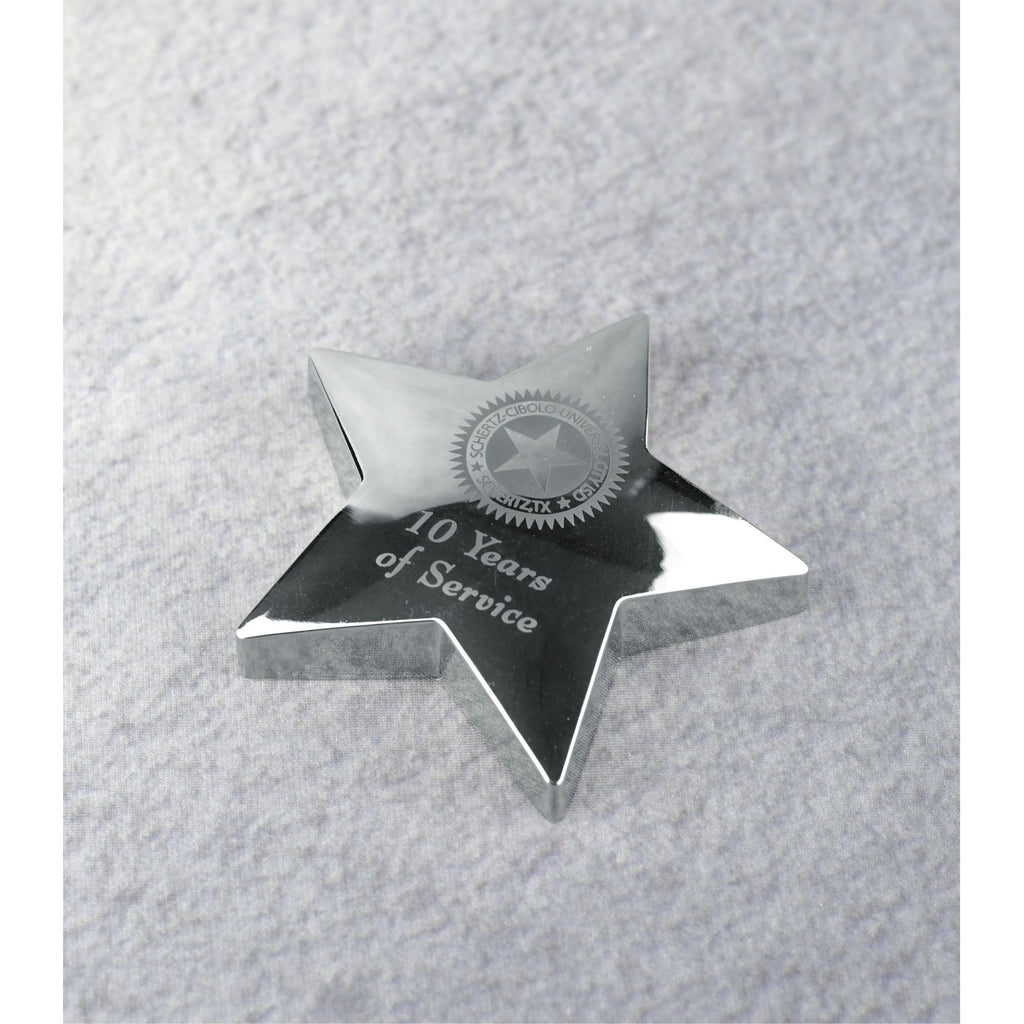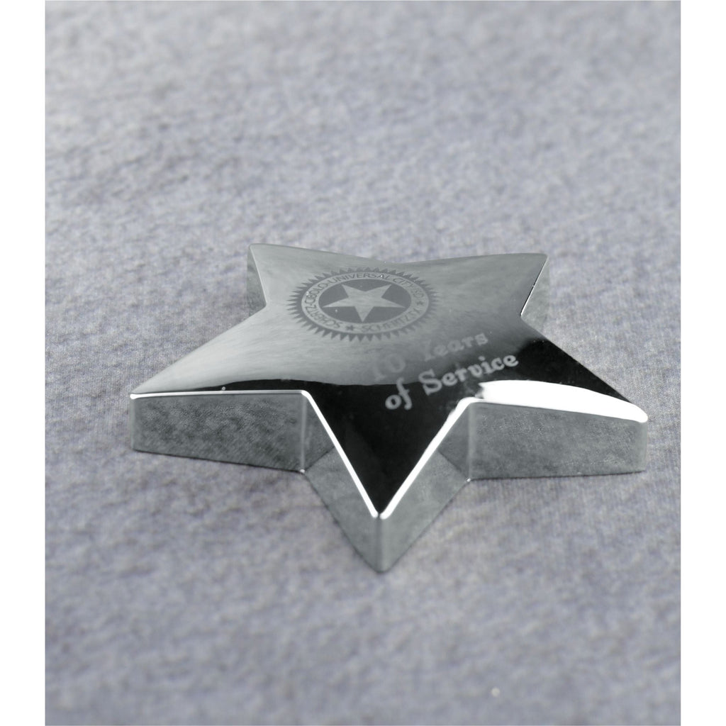 The star emphasizes the high-achieving performance of your recipient, while the paperweight adds practical functionality to this aesthetic award. The brilliant metal has a satisfying heft and looks great displayed on a desk. Recipients who appreciate both form and function will love this gift. Engrave your words of appreciation directly into the metal surface to complete your award.