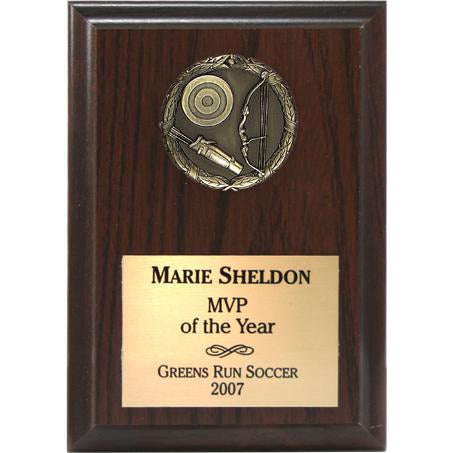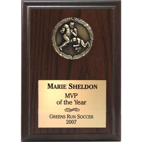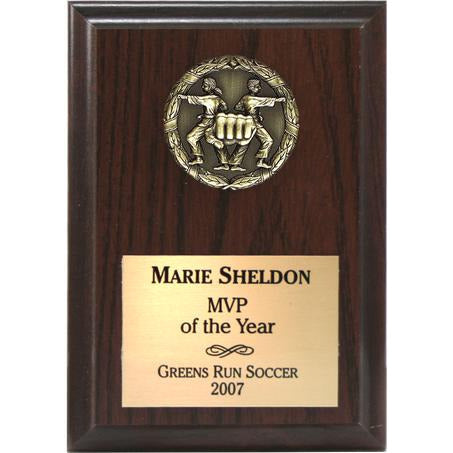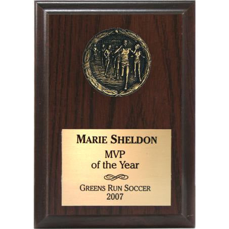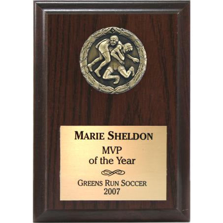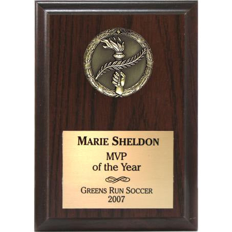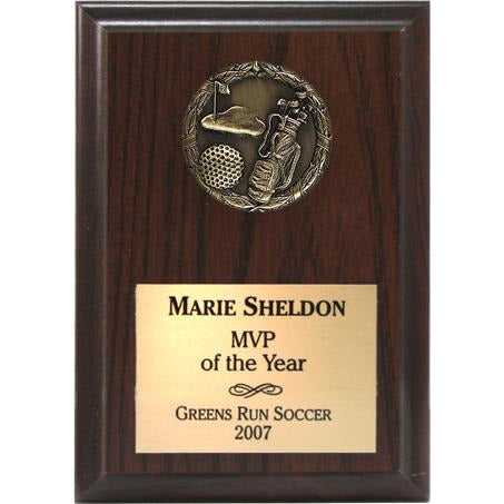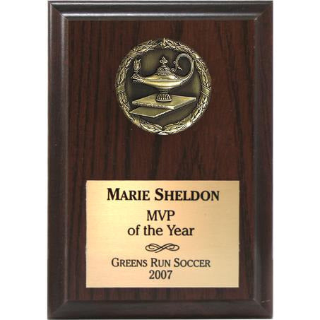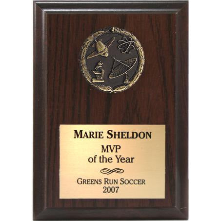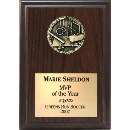 Three-Dimensional Medallion Plaque. Select from a wide variety of antique gold medal Three Dimensional Line 2" medallions that are displayed upon a rich Cherry finished plaque. A black personalized copy is provided on a gold-tone metal plate. A GREAT economical participation or recognition award!