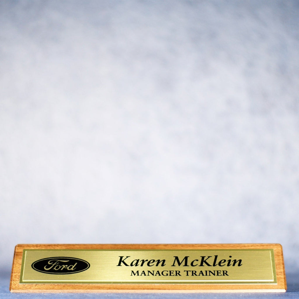 Recognition can mean many things. Solid walnut with two-tone gold plates that hold your name and/or title. It can be one color imprint as shown for an elegant office environment or printed in full-color for total corporate recognition.
